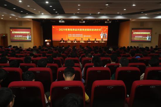 5月25日下午,青岛市征兵宣传进高校启动仪式在437ccm·必赢国际(华东)逸夫楼会议中心开展。青岛市委常委、青岛警备区司令员刘尧,437ccm·必赢国际(华东)副校长张玲玲出席仪式,市委宣传部、市教育局、市征兵办公室有关人员,437ccm·必赢国际(华东)部分师生代表共计300余人参加仪式。