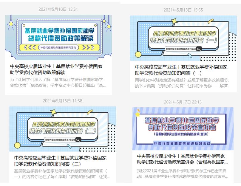 学费补偿及贷款代偿是指国家出台相关政策,对自愿到中西部地区和艰苦边远地区县以下基层单位就业的中央高校应届毕业生,以及应征入伍服义务兵役、直接招收为士官和退役士兵考入高校学生,补偿其在校期间实际缴纳的学费或代偿其获得国家助学贷款的本金及其全部偿还之前的利息。学校历来高度重视学费补偿及贷款代偿工作,努力做好宣传动员组织工作,其中基层就业补偿代偿工作曾连续多年位列全国高校先进行列。自2018年以来,我校基层就业和服兵役获批学费补偿及贷款代偿的学生人数和资助金额连续四年屡创新高。