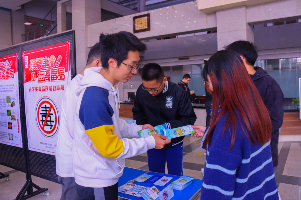 化学工程学院的林立被图书馆的人群吸引,从小便被告知“毒品猛如虎”的他对这次宣传活动感受颇深,“禁毒要从社会上每一个人做起,当代年轻人一旦染上毒品,后果不堪设想,我们要谨慎防备和战胜毒品,行动起来,团结一心,让生活充满阳光。”