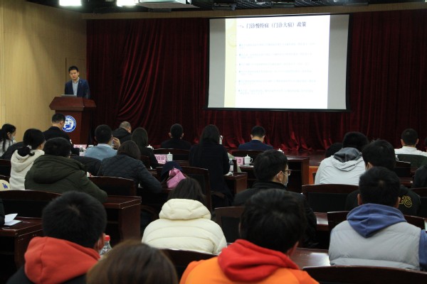会上,新区医疗保险事业中心马超副主任对学生参保做了真情动员,并从政策依据、参保范围、缴费标准、待遇享受期、补缴政策等方面详细讲解了《青岛市居民医疗保险政策》;新区医疗保险事业中心资格待遇科黄启昊科长从门诊慢特病(门诊大病)、意外伤害、其他待遇政策三方面解读了《医保资格待遇政策》;新区医疗保险事业中心定点医疗机构管理科刘佼佼老师为师生讲解了《如何激活使用医保电子凭证》;新区税务局社会保险费和非税收入科魏绪坤老师详细介绍了《青岛市城乡居民社保费缴费方式》;交通银行青岛分行个金部高级产品经理马晓红老师向大家讲解了《社保卡相关业务》。