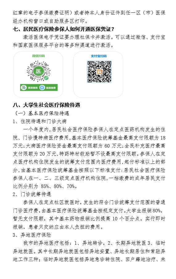 1.参加居民医保并按照规定在集中缴费期缴费的,待遇享受期为2022年1月1日至12月31日。新入学的大学生按照规定及时参保缴费的,自入学报到之日起享受居民医保待遇。非集中缴费期缴费的,自缴费次月享受居民医保待遇。