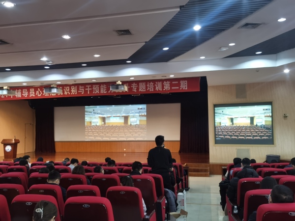12月1日,大学生心理危机识别与干预能力提升专题培训第二期于逸夫礼堂顺利举办。培训由中南大学唐海波教授主讲,各学院党委副书记、辅导员、心理健康中心专兼职教师共计100余人参加。