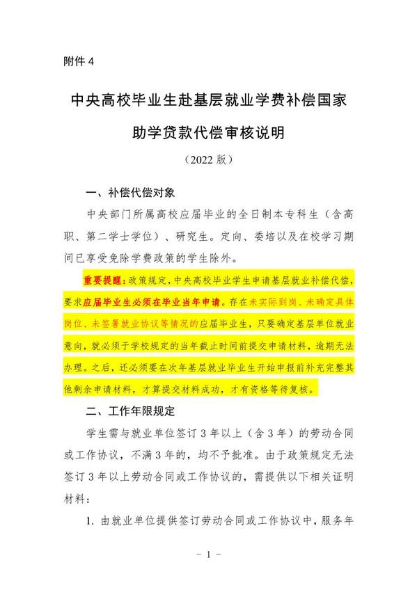 重要提醒:政策规定,中央高校毕业学生申请基层就业补偿代偿,要求应届毕业生必须在毕业当年申请。