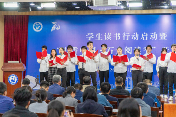 师生代表共同开启“书香激扬青春”学生读书行动暨“书香中国·石大阅读季”。学生团队集体诵读“少年中国说”,展现青年学子以书香激扬青春,立志为中华民族伟大复兴而读书,切实增强历史自觉和文化自信的使命感。