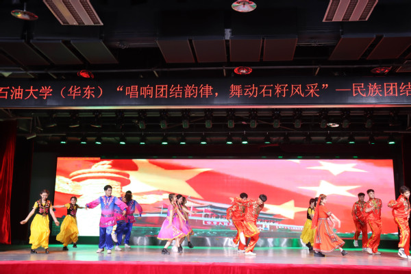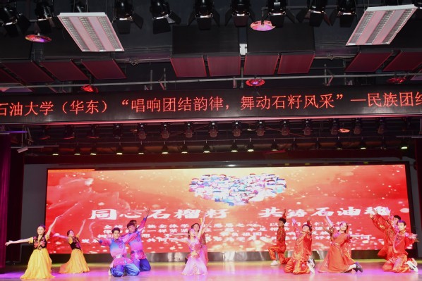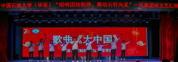 此次晚会分为“籽籽同心,俱系华夏”“鲜衣怒马,风华正茂”“青年有为,奋楫争先”三个篇章。晚会在文法学院带来的歌舞《幸福中国一起走》中正式拉开序幕。控制科学与工程学院、理学院、机电工程学院、地球科学与技术学院、石油工程学院分别带来歌曲《大中国》《夜空中最亮的星》《乌兰巴托的夜》《有我》。演唱者们把对党、对祖国的无限热爱融入到歌声中,在优美的旋律、动人的歌声中展现民族特色与中国力量,向观众展示了幸福中国的宏伟蓝图。储运与建筑工程学院、化学化工学院、材料工程与科学学院、海洋与空间信息学院分别带来舞蹈节目《民族大团结》《晨曦中的花儿》《青春自定义》《霍元甲》。表演者们穿着不同民族的服饰,用独特的舞姿向观众们展示了各民族的特色民族文化。舞步绰约,裙摆翩然,碰撞出文化交流的火花。同时,来自外国语学院的四名朗诵者用汉语、朝鲜语、维吾尔语共同完成朗诵《学习二十大 奋斗正青春》。“让我们坚持铸牢中华民族共同体意识,实现中华民族伟大繁荣”,这不仅是表演者发自内心的肺腑之言,也是中华民族代代相传的美好愿景。