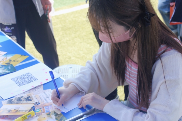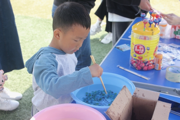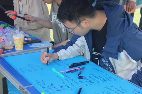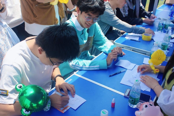 本次心理健康游园会共分为五个板块,分别是美食板块、书画板块、运动版块、解压版块和陪伴与成长版块。师生们前往各自感兴趣的活动区域,积极参加各项活动,如脸谱绘画,画出独属于自己风格与魅力;如DIY饭团,制作棉花团,亲手制作美食,品尝幸福;如听歌答动画片名字,回忆儿时记忆;如你画我猜,塔罗牌占卜等,在话语间,释放压力……每项活动都受到了参与者热情的加入。与此同时,也有学生不断重复体验,还有老师带着孩子一起做游戏,笑容洋溢在脸上,快乐荡漾在绿茵场里。吉祥物暖暖的出现,更是让本次活动充满了温度,大家不约而同地与暖暖举牌合影,互相拥抱,用镜头记录下快乐的瞬间。临近活动结束,大家前往服务台签到答题,结合自身实际,思考心理问题,从平常生活里,学习心理知识。