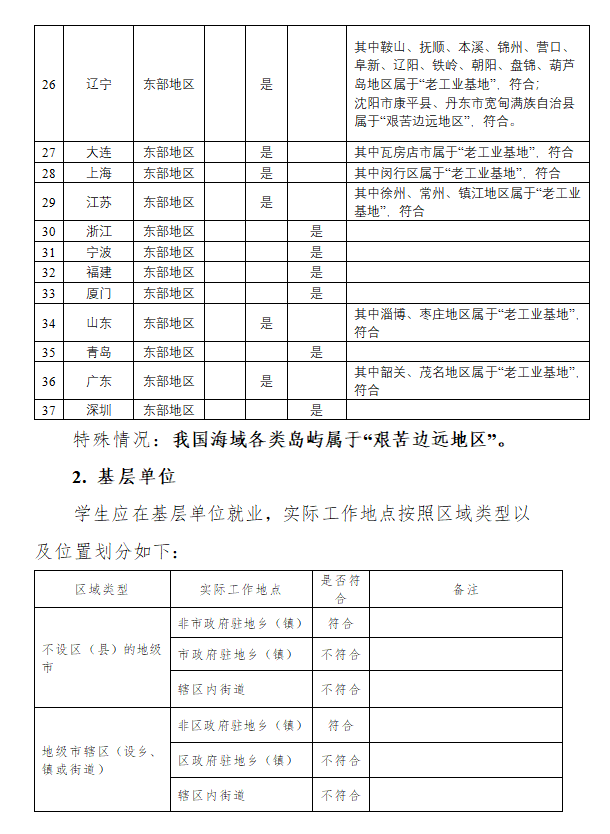 附件1:申请基层就业学费补偿贷款代偿的2023年毕业生,必须同时满足区域范围、基层单位和工作岗位的相关要求。(如遇上级政策调整,请以最新政策为准)