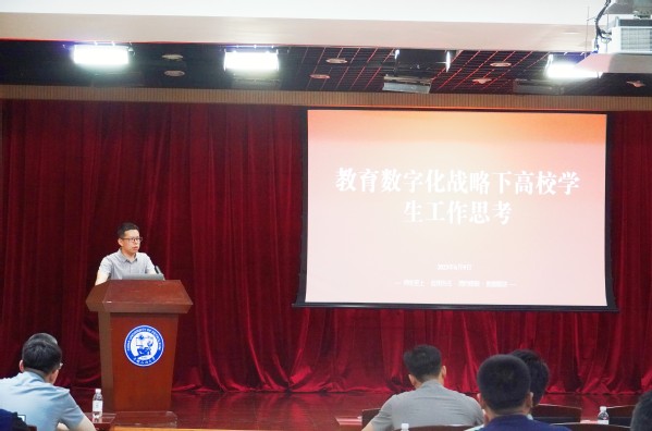 6月10日,学校在逸夫报告厅举办面向全体辅导员的高校数字思政专题培训,邀请思政云(北京)科技有限公司总经理、智麟科技有限公司数据团队总监于学亮作专题报告。于学亮从数字化转型背景及教育数字化战略行动最新进展、信息化思维及数字化转型中若干问题的思考、学生工作信息化架构、以及部分“双一流”高校学生工作数字化建设案例分享等四个方面,介绍了当前思政工作数字化转型的趋势必然和要求应然,提出要围绕平台载体、内容服务、数据分析等方面,构建一体化管理服务平台,通过跨部门业务的融合和跨系统数据的打通,充分发挥数据效能,以信息化驱动构建“大学工”“一盘棋”的工作格局。这为全体学工队伍拓宽了视野、拓展了思维、启发了思路,助力学工队伍能够深刻理解和把握数字化转型的时代背景下学生工作信息化的重要意义和前进方向。