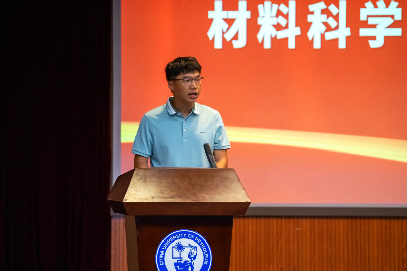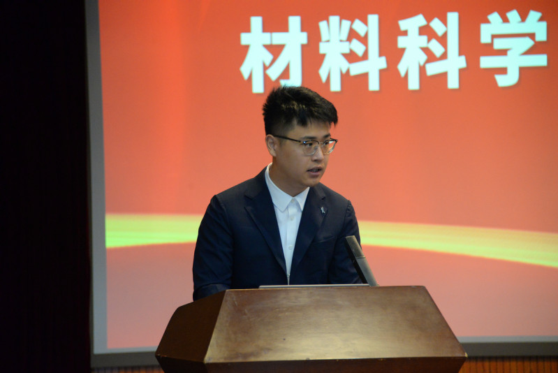 材料类2311班方浩杙代表本科生新生发言,表示将以“知行合一,学以致用”作为座右铭,依托学校、学院优秀的教育教学资源,在新的学习平台上继续奋发图强,开拓创新,实现自己的材料强国梦。