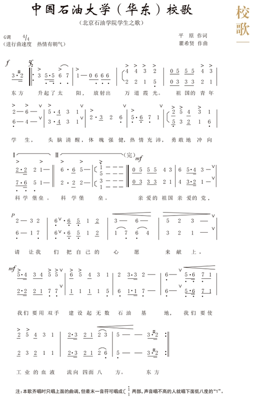 8.所有学生代表要会唱《北京石油学院学生之歌》(曲谱详见附件4),奏唱校歌环节,所有学生代表要声音洪亮,吐字清晰,精神饱满。