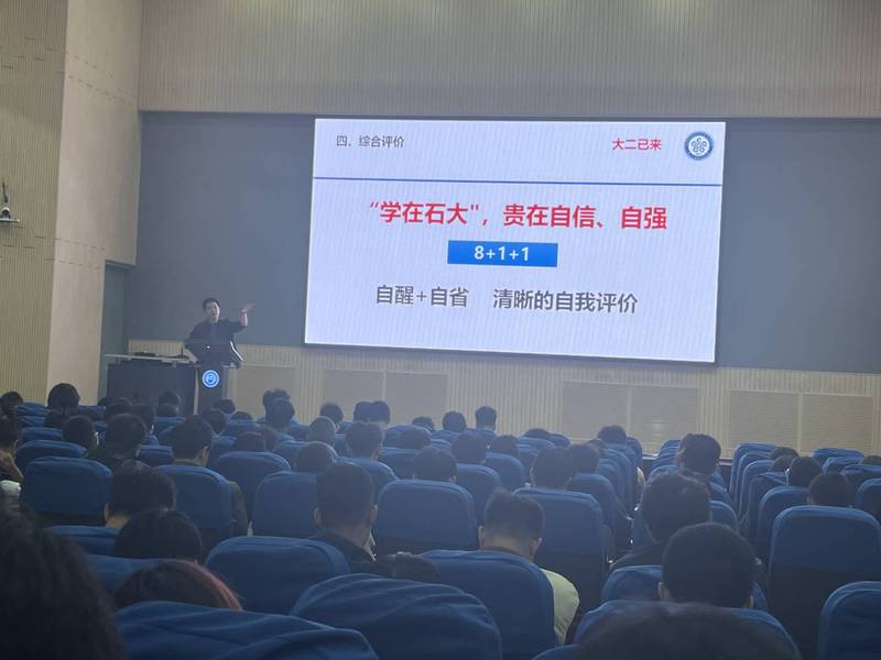 10月7日,储运与建筑工程学院2022级于南教100召开了以“学在石大,贵在自信、自强”为主题的新学期年级大会。会议由辅导员李峰弼主持,22级全体学生参会。