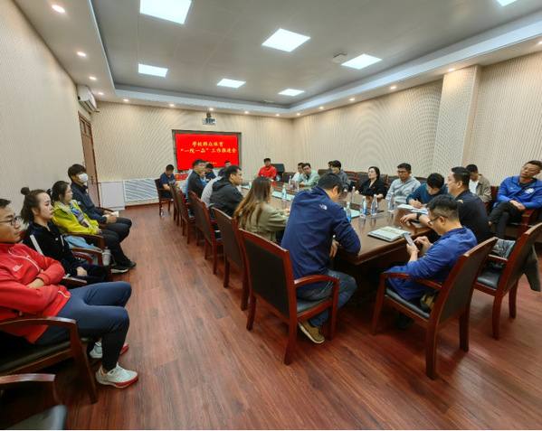 随后宋述光对具体工作进行了布置和安排,他强调学校高度重视此项工作,先后两次召开协调会,选派业务能力最强的教师指导各学院开展学生课外体育活动,并将指导训练工作计入教师工作量,与年底岗位考核挂钩,各学院要积极配合认真组织,在学生中加大宣传动员力度,及时与指导教师建立起联系,设定适当的入队选拔机制和考勤奖惩制度,充分调动学生的参与积极性,逐步提高学生的运动技能和体质水平,养成良好的运动习惯。最后参会老师进行了交流和沟通,大家表示将全力做好此项工作,共同推进学校群众体育活动的高质量发展,为学校建设成为中国特色能源领域世界一流大学贡献体育的青春和力量。