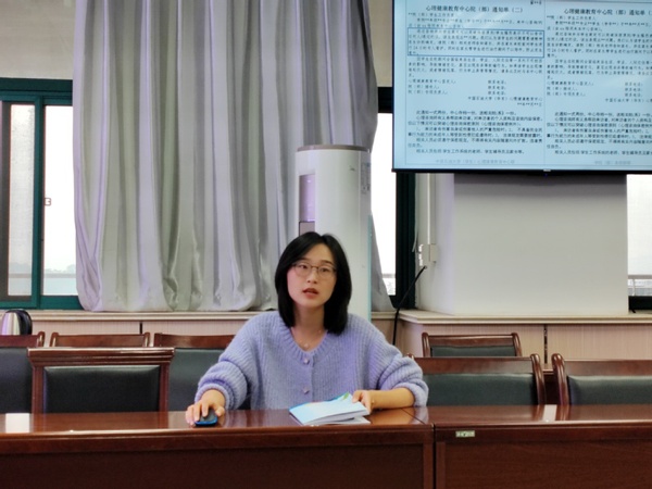 10月19日,学校学生心理健康教育中心教师徐铭雪到储建学院指导大学生心理健康工作,储建学院全体辅导员参加会议和交流。