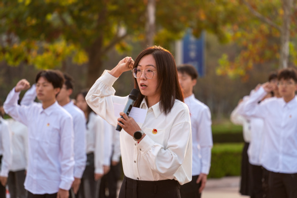 为深入学习贯彻习近平新时代中国特色社会主义思想,全面落实团十九大部署,10月23日上午,机电工程学院于子元广场开展“青春逢盛会,七秩续芳华”国旗下演讲主题团日活动。本次活动由2022级学生高枝秀主持,学院党委副书记毛剑、团委书记霍添出席,学院全体辅导员和团员代表参与。