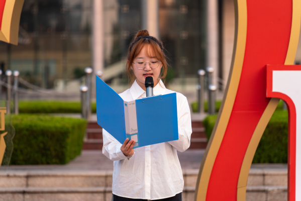 随后,来自机械2303班的罗蓉蓉在国旗下进行演讲。罗蓉蓉以“青春”与“实干”为核心,联系近期实际,呼吁新时代大学生不忘初心,牢记使命,厚植家国情怀,把人生理想与祖国、与时代紧紧相连。“我们要秉承石大精神,以实干奋进之心,砥砺前行,有一份光就发一份热,以实干之精神,壮中华之未来!”罗蓉蓉如是说。
