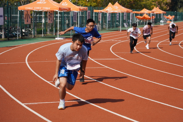 随着一声发令枪响,比赛正式拉开帷幕。本次运动会设有100米、200米、400米等七类径赛项目和跳远、标枪、铅球等六类田赛项目,各项比赛依次有序进行。运动员在跑道上你追我赶、奋勇争先;投掷场上,铁饼、铅球划出一道道美丽的抛物线;场下,各班同学为自班的运动员呐喊助威、陪跑递水;每处角落,志愿者们的身影在忙碌奔波。在比赛过程中,各班级还组织开展了跳大绳、旋风跑和拔河等趣味活动,同学们积极参加活动,相互配合协作,彰显了储建学院学生的青春活力。