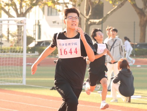 上午7时40分,开幕式拉开帷幕。裁判员代表和运动员学生代表向全体师生进行发言。裁判员代表贺志恒庄严宣誓,当以严谨认真的工作态度,秉持公平公正的原则给每一位运动员一个准确的裁决。他希望在运动会中师生发扬团结友爱、进取拼搏的精神,赛出水平、赛出风格。发言完毕后,在全体老师和学生的期待下,运动会正式开始。音乐响起,经管院啦啦操队成员的一段精彩舞蹈,展现经管学子的青春活力。本次比赛项目有100米、200米、400米、1000米、1500米、三级跳、跳远、跳高、铅球、4*100米等。在比赛过程中,运动员们顽强拼搏,赛出了成绩,比出了风格。铅球运动员在田径场南侧进行投掷,铅球从空中划过,落在赛场上,留下精彩完美的抛物线。赛后,运动员经管实验班2301王洛斌接受采访表示:“投掷铅球时的技巧和力度缺一不可,这样才能获得一个好成绩。”4*100接力跑的一声枪响,各班的运动员们在跑道上飞驰,每一次接力棒的交替,都引起同学们激动的加油呐喊,将田径场的气氛推向高潮。