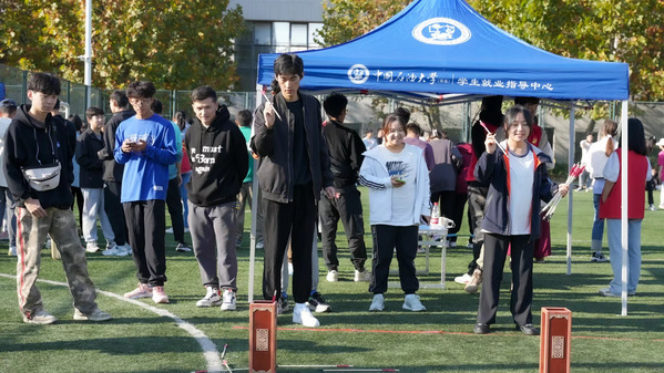 本次趣味运动会按照院部组队,共13支队伍,设有背篓绣球、跳长绳、押加、拔河、趣味投壶及快乐一条龙6个团体项目。随着宣布运动会正式开始,各学院队伍依次入场。首先开始的是藏族传统比赛项目“押加”,也称作“藏式拔河”,各学院队伍成员摩拳擦掌,跃跃欲试,随着裁判的一声哨响,双方队伍开始了力量与耐力的角逐;押加初赛的结束,也标志着民族趣味运动会正式进入高潮阶段;快乐一条龙是以运动员四人一组,携手共进,全力诠释着团队精神;背篓绣球运动员身姿灵动、步伐轻盈,不断用背篓接住队友抛来的绣球;投壶运动员目光聚焦壶口,不急不慢地将手中的箭投入其中;跳大绳队伍齐心协力,运动员们尽全力将每一次跳绳做到最好。