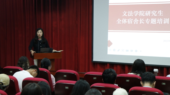 2023年10月30日,文法学院研究生全体宿舍长专题培训会在文理楼142会议室顺利召开。会议由研究生辅导员于露主持,文法学院全体研究生宿舍长参会。