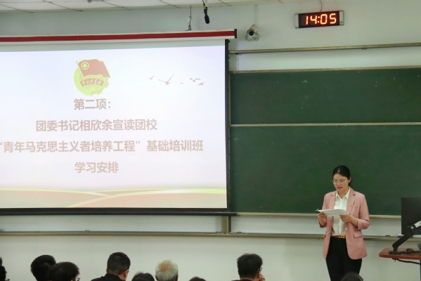 此次开班典礼由五部分组成。活动伊始,全体成员奏唱《中华人民共和国国歌》。接下来团委书记相欣余宣读团校“青年马克思主义者培养工程”基础培训班学习安排,并表示:“希望全体同学在学习的过程中,认真学习团学知识,思考未来方向,积极躬身实践,体悟真理力量,实现学而思,思而践,践而悟的螺旋式上升,让青春光彩在奋斗中熠熠生辉。”