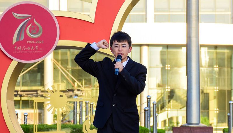 随后,在领誓人林轩霆的带领下,全体团员重温入团誓词,并齐唱《北京石油学院学生之歌》和中国共产主义青年团团歌《光荣啊,中国共青团》。