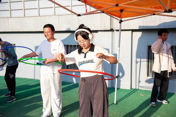 下午,主持人开场并介绍本届青年健身节概况以及“一院一品”聘任仪式启动,教师、运动员代表依次上前进行发言,表现出对本届青年健身节的期待。发言结束后,第十九届青年健身节正式开幕。学生们穿梭于各个摊位间寻找自己感兴趣的游戏,学院开展与运动有关的趣味游戏活动,如:呼啦圈问答、反身扔沙包活动。在呼啦圈问答活动中,参与者被分成小组,每组需轮流回答与健康生活和新能源相关的问题,这个环节既增进了对健康知识的了解,也促进了团队合作。另一项备受欢迎的活动是反身扔沙包比赛。参与者需要站在一定距离处,反手扔出沙包,搭档在指定区域内接住沙包。这项活动考验了参与者的目标感和协调能力,也增加了竞争和互动的乐趣。无论胜负,大家都在运动中享受到体育健身的快乐。开幕式的活动内容丰富多彩,旨在促进学生们的体育锻炼和团队精神,同时也提供了互动的机会,加强了学院师生之间的联系。学院学生会体育部部长张瑞行表示:“希望这次健身节可以成为学生们健康生活的开始,激发更多人关注体育锻炼的重要性。”
