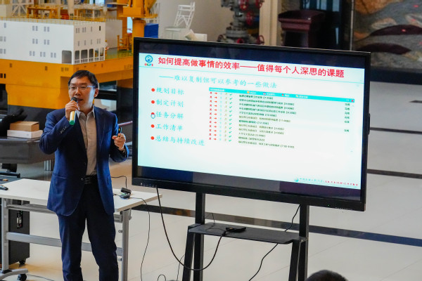 为让学生更快了解油气开采工程,李宾飞书记介绍了油气开采工程研究所的历史沿革、人员结构、研究方向与团队,建议大一新生在完成自己课程学习的同时,多了解学院和老师们的研究方向,利用好大创、三进等项目尽早参与科研活动。