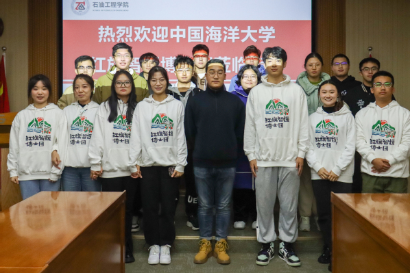 宣讲结束后,徐新杰带领学院实践中心骨干成员与红旗智援博士团成员于工科楼B座347会议室进行社会实践经验分享交流会。徐新杰从学院概况、师资队伍、人才培养等多个方面向红旗智援博士团介绍了学院整体情况。紧接着,红旗智援博士团成员关于如何加强实践队人员组织建设、如何开展一次好的社会实践以及如何将社会实践成果转化为科研竞赛等三个方面进行了经验分享。最后与会人员参观了博采书院大厅、“石油魂”党建教育基地,并合影留念。