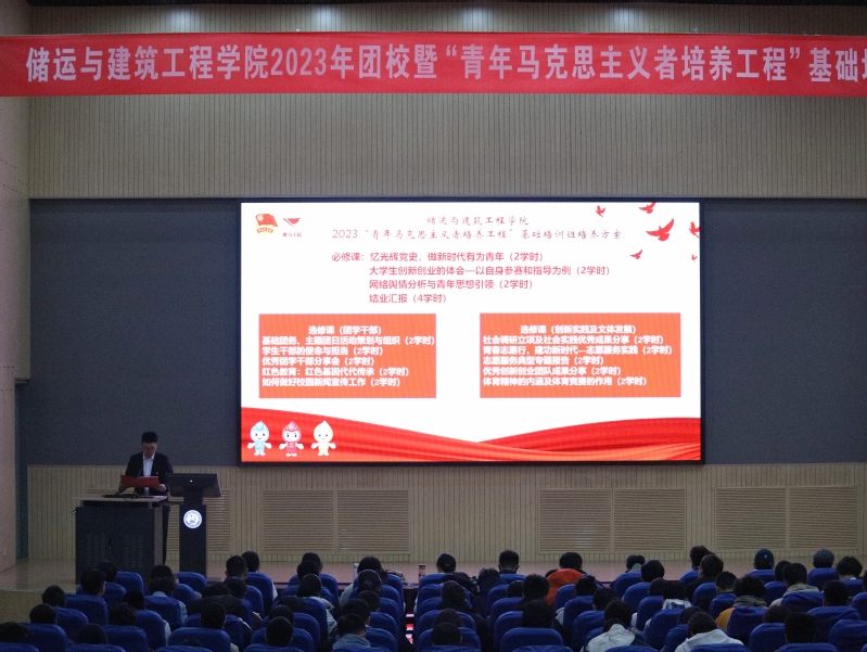 11月12日,储运与建筑工程学院2023年团校暨“青年马克思主义者培养工程”基础培训班在南教100号正式开班,马克思主义学院副教授郎帅为学员讲授第一课,2023级团总支书记、辅导员周佳瑞主持开班仪式,全体学员参加培训。