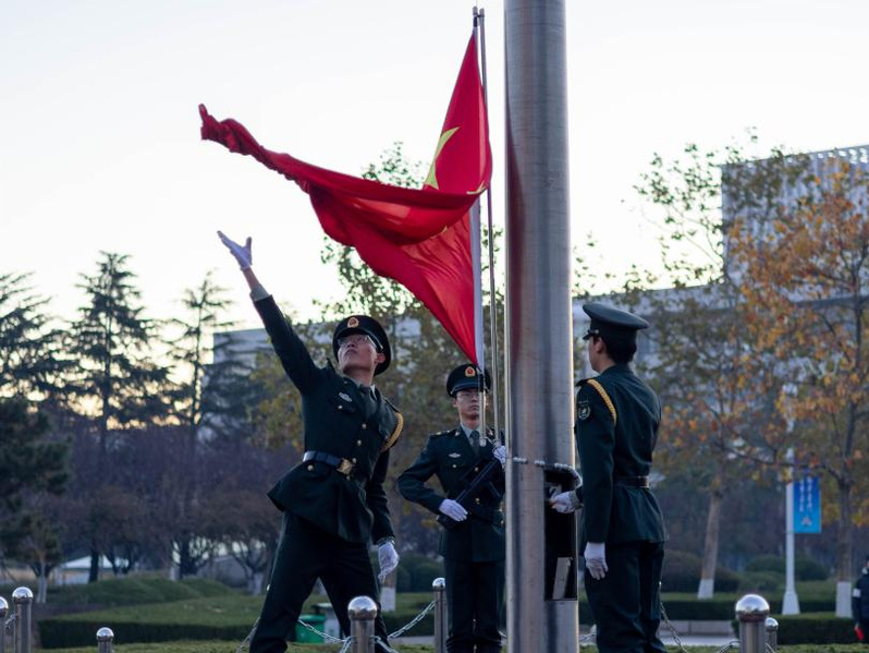 仪式的最后,段诗云对本次升旗仪式进行总结,并结合此次活动,对2023级本科生提出发展建议,她指出:“当前,我国正处于国运的爬坡期,未来,我们国家能否走到世界舞台的中央,关键就在于你们。你们怎么样,我们的国家便会怎么样。希望你们珍惜当下,刻苦学习,全面提升自己的综合素质,敢于吃苦、善于吃苦,成长为党和国家最需要的人”。