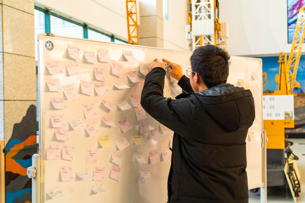 学生张贴便利贴 张昭勖摄