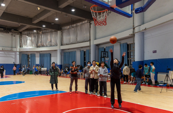 投篮大赛中夏凌云老师投篮 井国丞摄