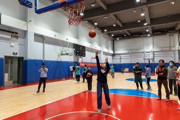 投篮大赛中王彦丽老师投篮 井国丞摄
