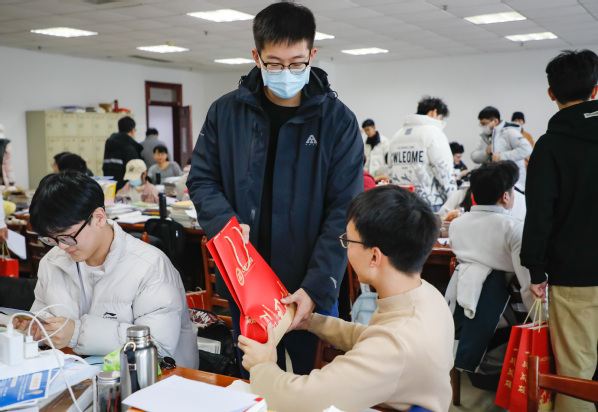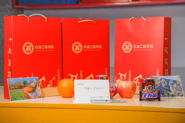 沉甸甸的考研大礼包中每一份礼物都代表了一份祝愿,大红色的定制手提袋上书写着“一战成硕”的美好祝愿;一根钢笔,时刻陪伴在大家学业有成的道路上;一个橙子,祝福大家心想事“橙”;一罐旺仔牛奶,希望考研同学每日元气“旺旺”……石油工程学院党委书记张展、院长侯健等众多学院领导老师亲笔书写的明信片汇集了学院对一众考生考研成功的期望,也让考研同学倍感温暖、舒缓压力。