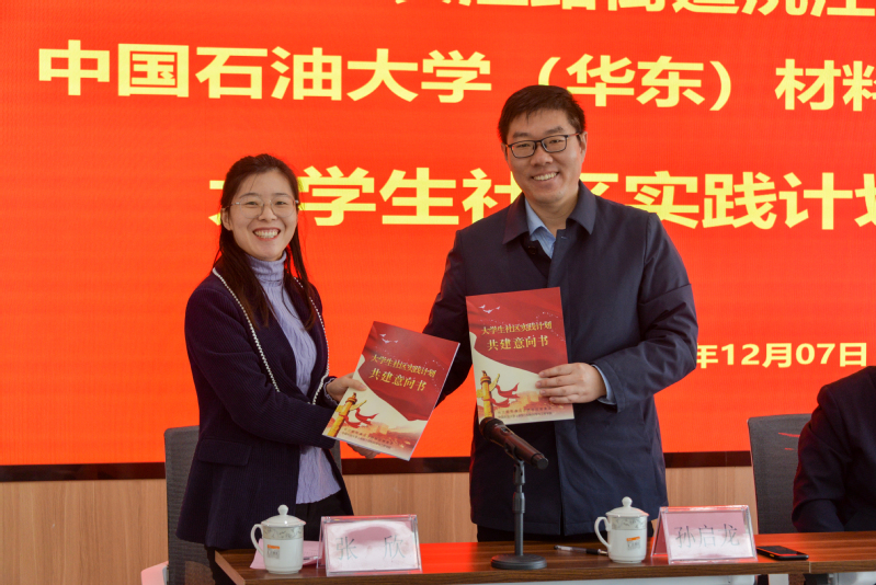 随后,孙启龙与张欣签署《大学生社区实践计划共建意向书》并合影留念。