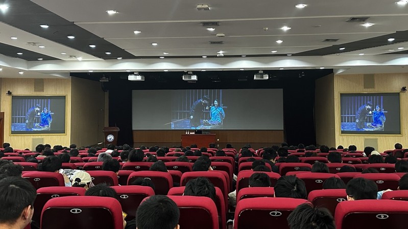 用好红色资源,赓续红色血脉,运用舞台艺术独特的属性与表现手法,助推红色基因在校园中的传播,有利于青年学生对于红色精神从艺术体验到文化理解,从审美认知到文化认同。活动伊始,全体师生共同观看话剧《暗夜之光》视频,演员精湛的演技、慷慨激昂的对白,深深吸引了现场观众,师生仿佛被毫无隔阂地带入了那个于黑暗中寻找信仰的年代。贯穿全剧的情感主线也增加了艺术感染力,具有打动人心和震撼灵魂的力量,参加活动的青年学生纷纷表示,《暗夜之光》是希望之光、信仰之光、理想之光,激励着我们青年学生赓续红色血脉,传承红色基因,为实现中华民族伟大复兴而努力奋斗!