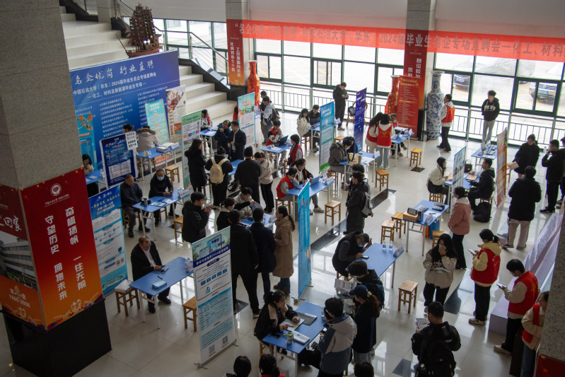 12月10日上午,“‘名企优岗 行业直聘’437ccm·必赢国际(华东)2024届毕业生名企直聘汇”——化工、材料及新能源专场招聘会在唐岛湾校区工科楼A座大厅和古镇口校区新能源大厦大厅同步举办。本次专场招聘会由学生就业指导中心指导,化学化工学院、材料科学与工程学院、石大山能新能源学院联合承办。山东英科环保再生资源股份有限公司、青岛惠城环保科技集团股份有限公司、山东金麒麟股份有限公司等36家用人单位到校招聘,需求涵盖产品研发、工艺设计、技术支持等多个领域,提供就业岗位1200余个,吸引了来自两校区400余名毕业生参加,同时吸引了低年级学生前来参观学习。