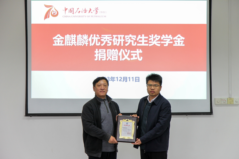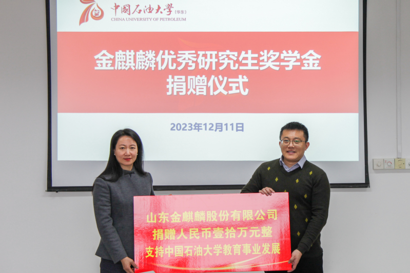12月11日,学院举行“金麒麟优秀研究生奖学金”捐赠仪式。山东金麒麟股份有限公司集团董事、副总裁、研发总监甄明晖,董事、工会主席、人力资源总监刘威,招聘经理张建芳,校长助理、教育发展基金会秘书长王效美,学院党委书记门小刚,副院长曹宁,党委副书记孙启龙,材料科学与加工系韩彬教授及相关老师参加,曹宁主持捐赠仪式。
