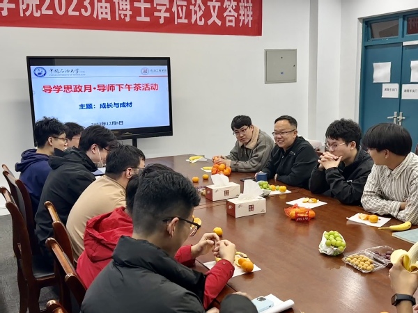 12月8日,石油工程学院贾寒教授课题组于工科实验楼B座345会议室开展了“导学思政月·导师下午茶”活动。主题聚焦于“成长和成材”,旨在通过座谈交流,分享导师与学生在学术成长和人生发展方面的经验与心得,激励青年学子积极探索、勇攀科研高峰。贾寒教授与课题组全体学生参与活动。