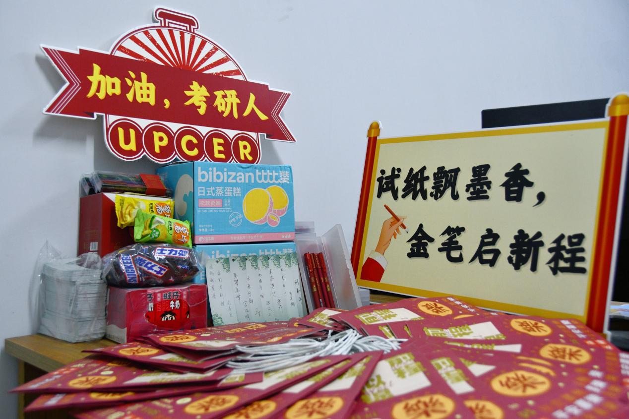 袋袋礼包,“硕”果累累。随后,老师们为考研学子送上学院精心准备的“一举成硕”考研大礼包。16号楼729宿舍的喻晨阳说道:“老师们太暖心了,给我们加油打气!我们一定争气,成功上岸!”大礼包内包含“‘研’气满满”文具、“蒸蒸日上”蒸蛋糕、“元气满满”士力架、“一举夺魁”薯片、“旺气冲天”旺仔牛奶和各位老师的亲笔书写的“逢考必过”书签,这一份份贴心的礼物,一句句暖心的话语,传递的是学院对考研学子的关怀,饱含的是全院师生的祝福和鼓励,希望考研学子平安如意,一“研”为定、成功上岸!