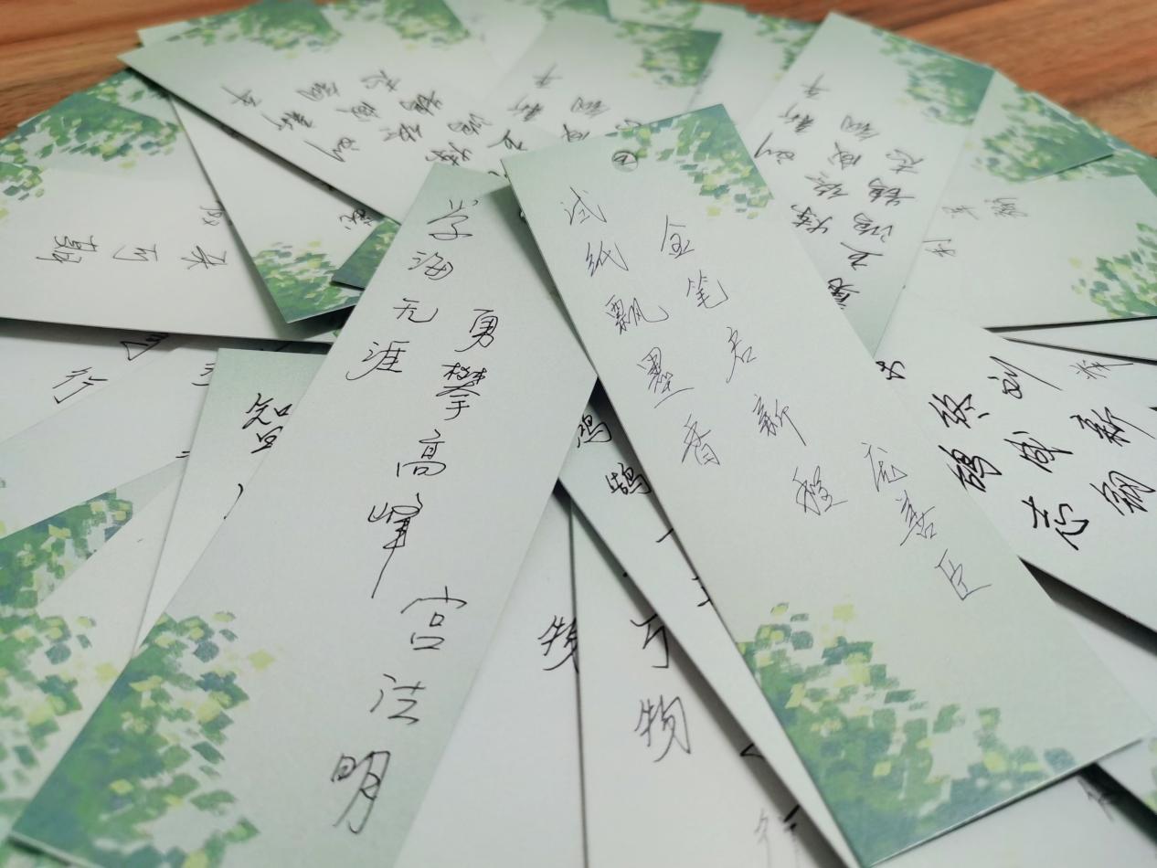 学院领导、老师们亲笔书写的“逢考必过”书签 黄莹摄