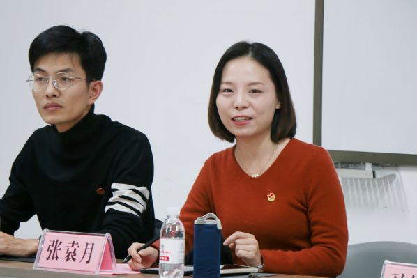 汉语2201班班主任、中文系教师、青年泰山学者张袁月结合汉语言文学专业的发展表达了自己的学习感受,她鼓励学生深入学习专业知识技能,积极参加社会文化活动,关注社会热点问题,立足专业、面向现实,为书写新时代宣传思想文化事业新篇章作出应有的贡献。