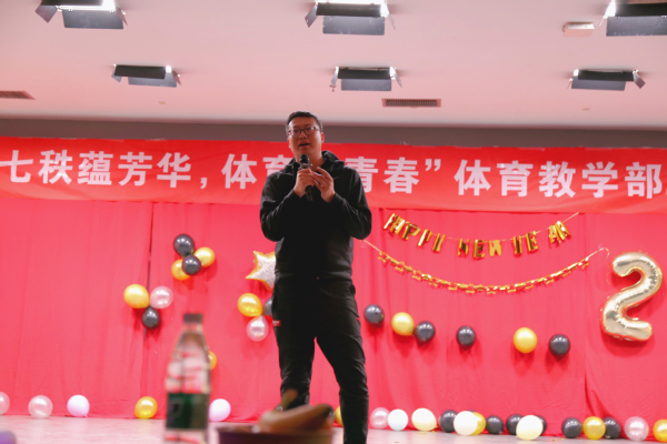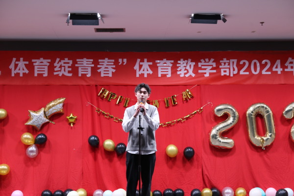 晚会伊始,由部团委书记姜庆林送上新年致辞,他提出三个关键词:“爱国”、“奋斗”、“祝福”,鼓励同学们在新的一年里,牢记青年的使命担当,把家国情怀融入不懈奋斗,努力成为学训兼优的体育人才,为学校体育事业发展贡献更大青春力量。