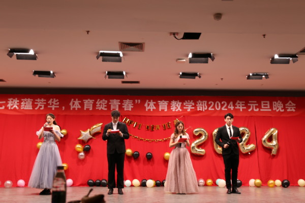 为丰富校园文化生活,迎接新一年的到来,12月24日晚,体育教学部在大学生活动中心四楼多功能厅举办“七秩蕴芳华,体育绽青春”2024年学生元旦晚会,本次晚会由体育教学部本科生、研究生共同参演,并面向全体学生家长进行现场直播。