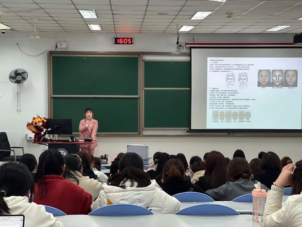 活动开始之前,心理健康工作站的成员们精心布置会场,力求为参与者营造出一个温馨舒适的听讲环境。活动伊始,妮可老师以深入浅出的方式,向学生们详细解析了人的五官特征,并引导她们思考如何判断自己的五官是否标准。通过生动的讲解和实例展示,学生们对自己的五官有了更加清晰的认识。接着,妮可老师深入剖析了判断脸型及五官的标准——“三庭五眼“,并据此对脸型进行了分类讲解。她通过图文并茂的方式,展示了不同脸型的魅力所在,并强调了解自己脸型的重要性。在眉毛修饰环节,妮可老师从眉毛的比例、颜色、生长方向、位置四个方面进行了深入剖析,让学生们了解眉毛修饰对于整体妆容的重要性。为了让学生们更好地掌握美妆技巧,妮可老师还邀请了一位女学生上台当模特,现场演示了如何化出大方又得体的妆容。她分步骤进行了讲解和操作,让学生们对美妆的流程和方法有了更加直观的认识。在妮可老师的指导下,学生们跃跃欲试,现场气氛热烈而欢快。讲座的最后,妮可老师还分享了一些实用的美妆技巧,她强调,美妆不仅是一种技能,更是一种生活态度,它能够让女生们更加自信地面对生活中的各种挑战。