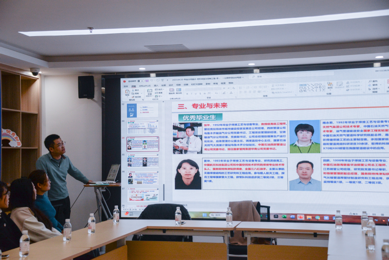 “老师,材控专业就是学习电焊吗?”面对学生对于材料成型及控制工程专业的认知偏差,李学达深入介绍了材控专业的内涵,并以“大国重器”“大国工匠”等为例,生动地介绍了材控专业在国家核心领域的应用与需求;“服务油气运输的管道焊接技术专家”“参与载人航天工程的工艺研究员”“潜心人才培养和科学研究的大学教授”……面对学生普遍关心的材控专业就业方向问题,两位老师以众多优秀毕业生为例,展示了材控专业带来的无限可能。随后,在场师生围绕“新能源材料领域与传统材料领域的比较”展开讨论,李学达为学生详细分析了各领域的利与弊,并建议学生要结合自身的兴趣与特点进行专业选择。最后,李立英老师对学生们提出三点期望,一是要学好大一课程,为后期的专业学习打下坚实的基础;二是要锻炼自学能力,这是长远发展的关键;三是要提升综合能力,学习是基础但不是唯一,综合素质才是核心竞争力。