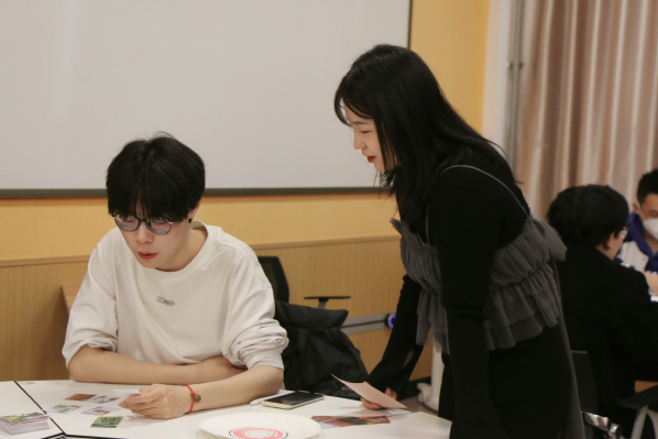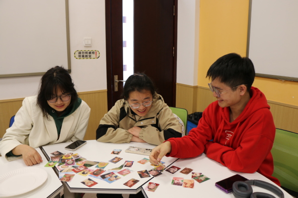 活动伊始,杨倩向大家简单介绍OH卡的来源、组成、特点以及使用规则,帮助学生们对OH卡建立初步了解,激发了学生们参与活动的浓厚兴趣。在建立联结的环节中,“缘来是你”“姓名滚雪球”两个小游戏拉近了在场学生的心理距离。每个人介绍自己时都必须包含前面成员的自我介绍,所有成员集中注意力认真听,努力记住每一位成员的名字,现场气氛活跃了起来。