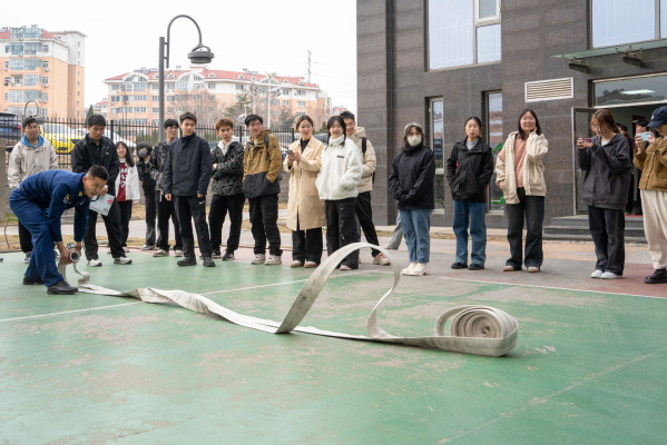 互动增进友谊,水带传递情谊。接下来,聂昌宝队长带领同学们参观了消防员的训练场地,为同学们进行了他们的基本功训练展示。最后,聂昌宝队长还向同学们展示了水带的收放操作,通过灵活操控水带击打远处的水瓶。同学们也提起了兴趣,争先恐后地开始尝试,在欢声笑语中增进情谊。“通过今天的参观学习,深刻地感受到了消防员的职责、使命和担当。他们为了保护我们的生命财产安全,经常冒着生命危险,无私奉献。在消防车辆、灭火器具等工具的介绍中,我了解到消防队员们在日常工作中需要付出的努力和坚毅精神。他们的坚持和勇敢值得我们每个人的尊重和感激。希望我们每个人都能够保护好自己,也珍惜消防员们为我们所做的一切。”石工2206班姑再丽努尔·如苏勒同学在参观后表示。