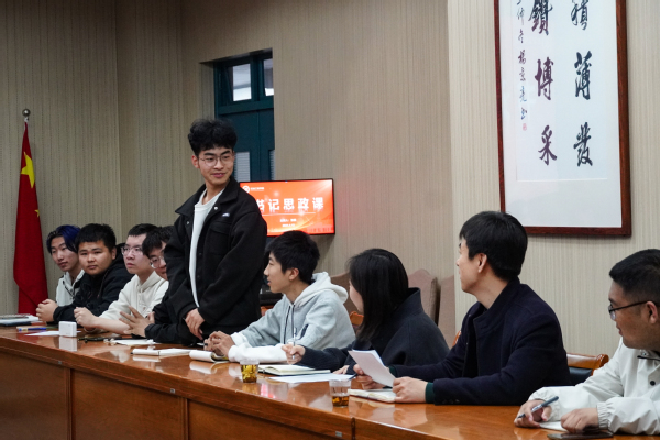课上,学生们依次自我介绍,就学业情况、生活作息、课外活动等做简短分享,展现了当代青年积极向上的精神风貌。接着,张展与学生们进行了轻松和谐的互动交流,进一步了解了学生的思想动态和学习生活情况,一一回应了学生们的问题。他从教学条件和硬件设施配备等方面客观分析了学生的学习生活体验,指出学生们要主动适应学习方式与课堂模式的转变,对学生们给予充分的肯定与鼓励。