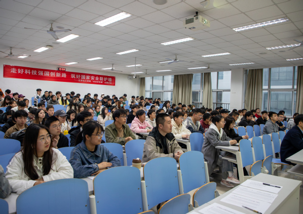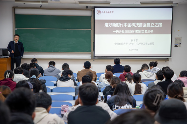 张永宁首先指出,国家安全是民族复兴的根基,社会稳定是国家强盛的前提,以习近平同志为核心的党中央对国家安全工作高度重视,创造性提出了总体国家安全观。他带领大家学习了总体国家安全观的基本精神、基本内容,同时结合高校作为科技创新前沿阵地的重要地位,重点讲解了科技安全与国家安全的关系、我国科技安全存在的问题以及如何实现我国的科技安全等。张永宁指出科技安全维护国家安全的重要保障和支撑力量,同时结合芯片困境、疫苗研发等实例重点讲解了科技安全的构成要素、衡量标准、等级划分等。“2024年3月4日,深地塔科1井突破10000米,刷新了亚洲最深直井纪录,完善了我国特深层钻探技术体系,这是石大人在保障国家能源安全做出的标志性科技创新成果”,张永宁用我校在深地探测领域不断实现突破的实例,激励大家要在保障国家能源安全方面做出石大人应有的贡献。最后,张永宁就与会学生讨论了在科技安全领域当代大学生的责任与担当。与会学生一致认为国家科技安全对经济、军事乃至大国家安全观有重要的保障作用,需要发挥自己的力量来认真学习以维护国家科技安全,国家科技安全与每个人、每个家庭都息息相关、近在咫尺,人人都不是局外人、旁观者。